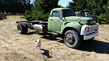 This truck has been sitting outside in Molalla, Oregon for 20 years. There are no pictues of the engine because I have been unable to lift the hood and didn't want to force it. I doubt the tires will roll so a heavy-duty flatbed trailer may be needed to haul it. I have not been able to find a key to open the cab to clean it out, check the odometer, or verify the exact model number, which I read may be under the driver's seat.
